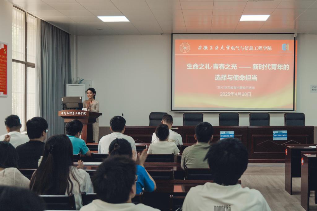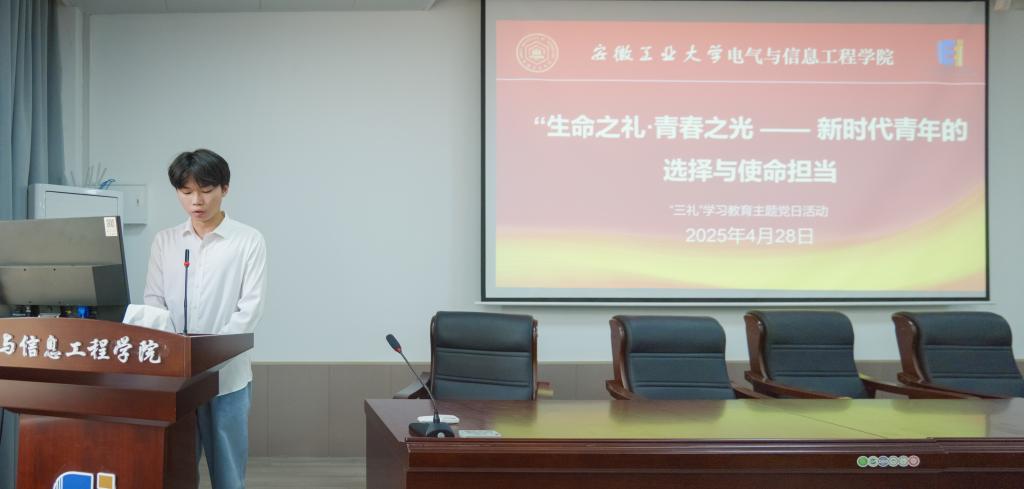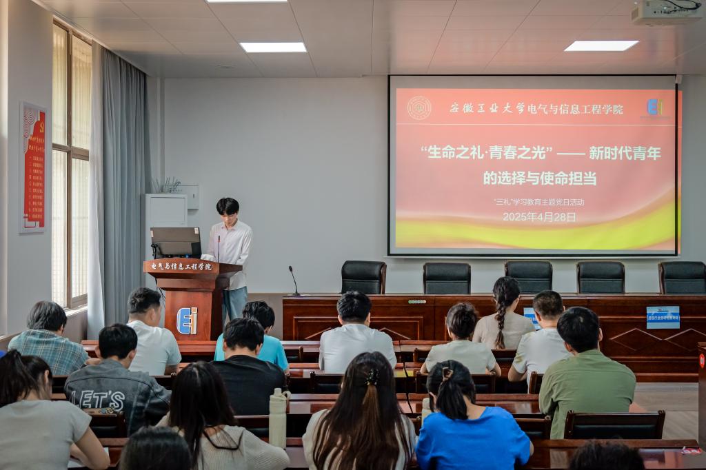 为深入学习贯彻党的二十大精神,落实学校“礼敬优秀传统文化 德润文明和谐校园”活动要求,引导青年学子践行社会主义核心价值观,弘扬“奉献、友爱、互助、进步”的志愿服务精神,4月28日,学院学生测控党支部联合学生电气工程党支部举办“生命之礼·青春之光——新时代青年的选择与使命担当”暨“三礼”学习教育主题党日活动。活动特邀学院造血干细胞捐献志愿者、电232班学生何李浩作主题宣讲,活动由学生测控党支部书记杨恒基主持,学生党员、入党积极分子及师生代表100余人参加。