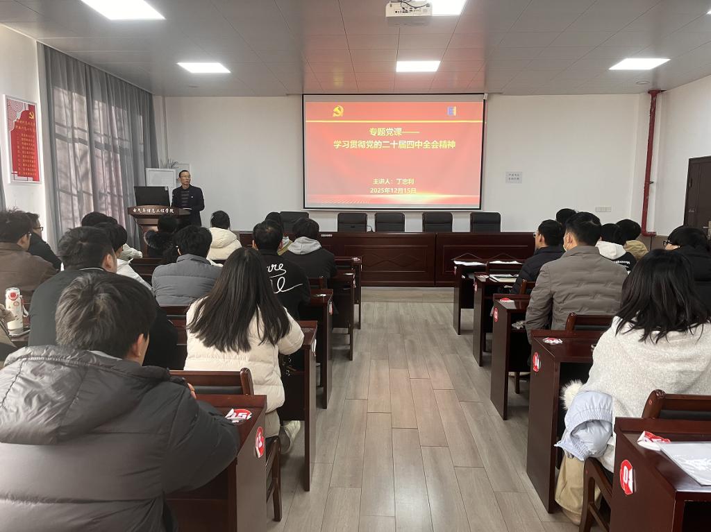 宣誓活动结束后,丁忠利以“学习贯彻党的二十届四中全会精神”为主题讲授专题党课。他围绕全会的重大意义和丰富内涵,结合党的奋斗历程和治国理政的实践,从会议的重大时代意义、主要精神内涵和如何贯彻落实全会精神的实践路径等三个方面展开宣讲,阐述了我们党带领全国各族人民在强国建设和民族复兴征程上的奋斗精神。他勉励全体党员在学习、工作和生活中,要通过持之以恒加强党性修养、持续深化理论学习、不断投身创新实践、积极争当先锋模范,用全会精神指导学业实践、带动身边同学共同进步,在新时代新征程中展现青春风采。