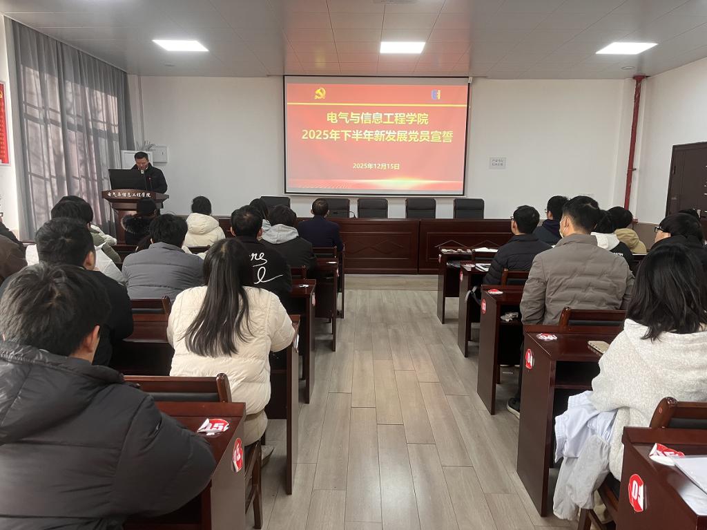 为进一步教育引导新发展党员铭记入党初心、强化党员意识、坚定理想信念,发挥党员先锋模范作用。12月15日下午,学院党委在电气楼113室举行2025年下半年新党员入党宣誓活动暨专题党课。学院党委书记丁忠利、党委副书记孔洋波、2025年下半年新发展党员参加活动,孔洋波主持。