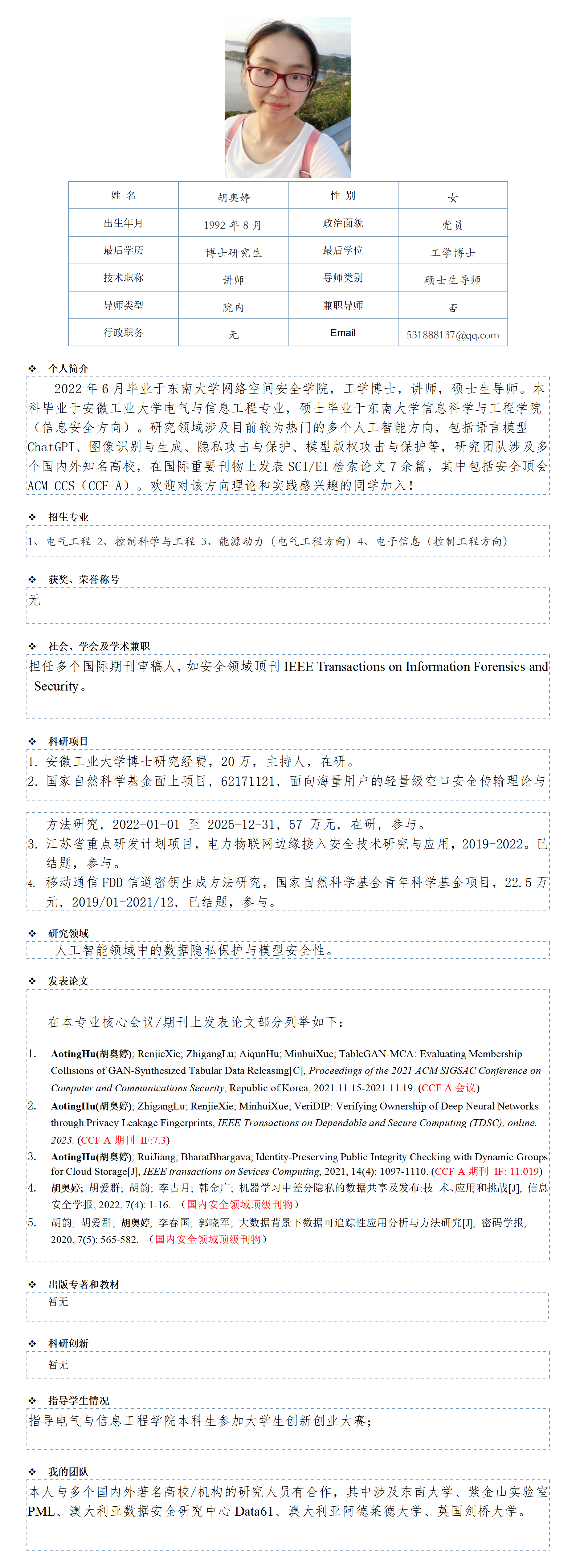 胡奥婷 博士