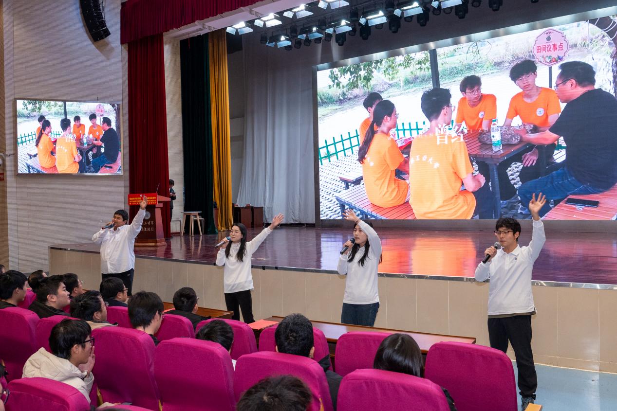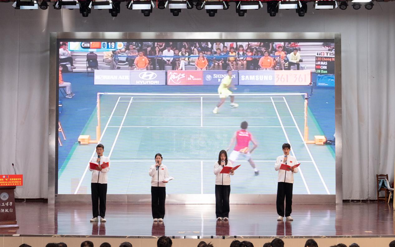 与会人员共同欣赏了暖场歌曲《辞家千里又千里》,观看了学院团委2025年度总结纪录片《“电”亮》,记录片回顾一年来电气团学活动的丰硕成果与电气学子昂扬向上的精神面貌。第二十八届学生会主席、国家奖学金获得者王毅,宝钢奖学金获得者郭策、两项A类科技赛事国家级一等奖获得者张逸帆、体育赛事获奖代表李泽聪、梁警文、邓璇、廖晖,校十佳班级自224班学生代表自224班柳欢、侯云飞分别围绕“砺学笃行之光”、“科创领航之光”、“才体双馨之光”、“凝心聚力之光”四个主题,通过讲述、访谈、朗诵的形式生动展现了电气学子勤学笃行、团结拼搏、勇攀高峰的青春风貌。