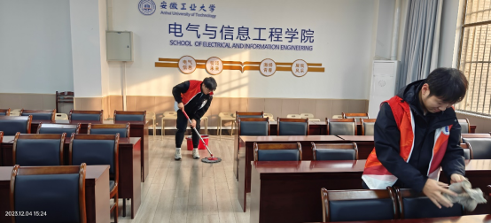 会后,支部党员自发留下开展“红马甲”行动—环境卫生清理活动,大家井然有序地分工合作,清洁会议室、清理桌椅、清扫卫生间等场所,持续保持学院办公和学习场所的环境风貌,展现了研究生党员的奉献精神和良好的道德风尚。