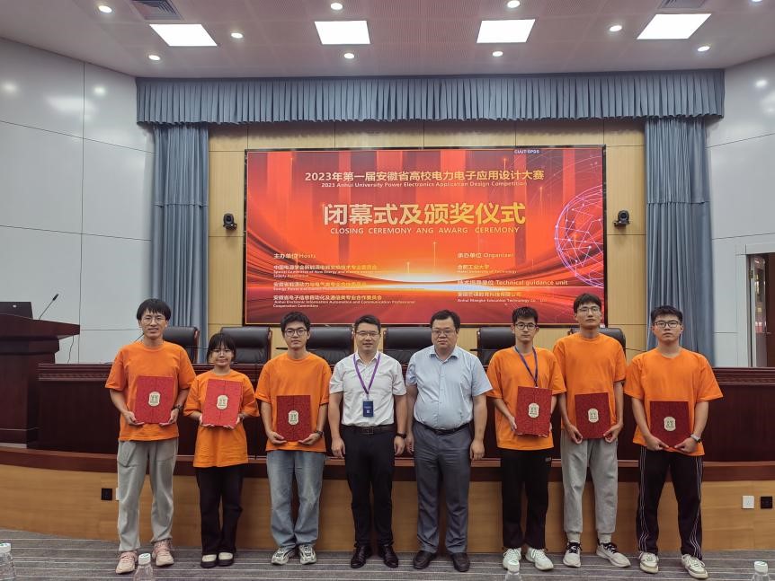 8月8日,第一届安徽省高校电力电子应用设计大赛在合肥成功举办,来自全省各高校的电力电子领域专家、学者和参赛选手齐聚一堂,共同探讨促进安徽省电力电子领域的学术交流与合作,推动电力电子技术的创新与发展。我院院长沈浩教授和副院长程木田教授到现场观摩与指导,由周郁明教授指导的志学队(由徐海龙、张浩然、袁俊浩等组成)和对对队(由徐邵、钱浩天、栗文洁等组成)获得该项赛事的二等奖。