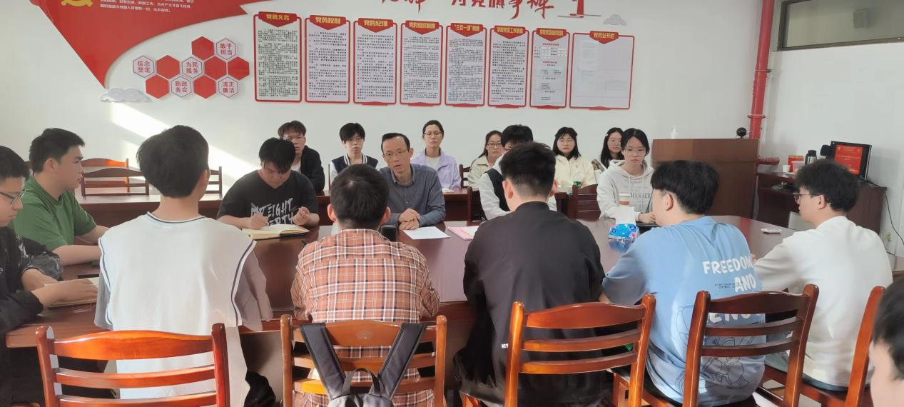 为了深入学习贯彻党的二十大精神,牢牢把握学习贯彻习近平新时代中国特色社会主义思想主题教育的“学思想、强党性、重实践、建新功”总要求,引领广大学生党员深入学习领会习近平新时代中国特色社会主义思想,特别是深入领会党的创新理论的道理、学理和哲理。5月9日下午,学院党委书记丁忠利为学生电气工程党支部的党员讲授题为《用习近平新时代中国特色社会主义思想武装青年》的专题党课。