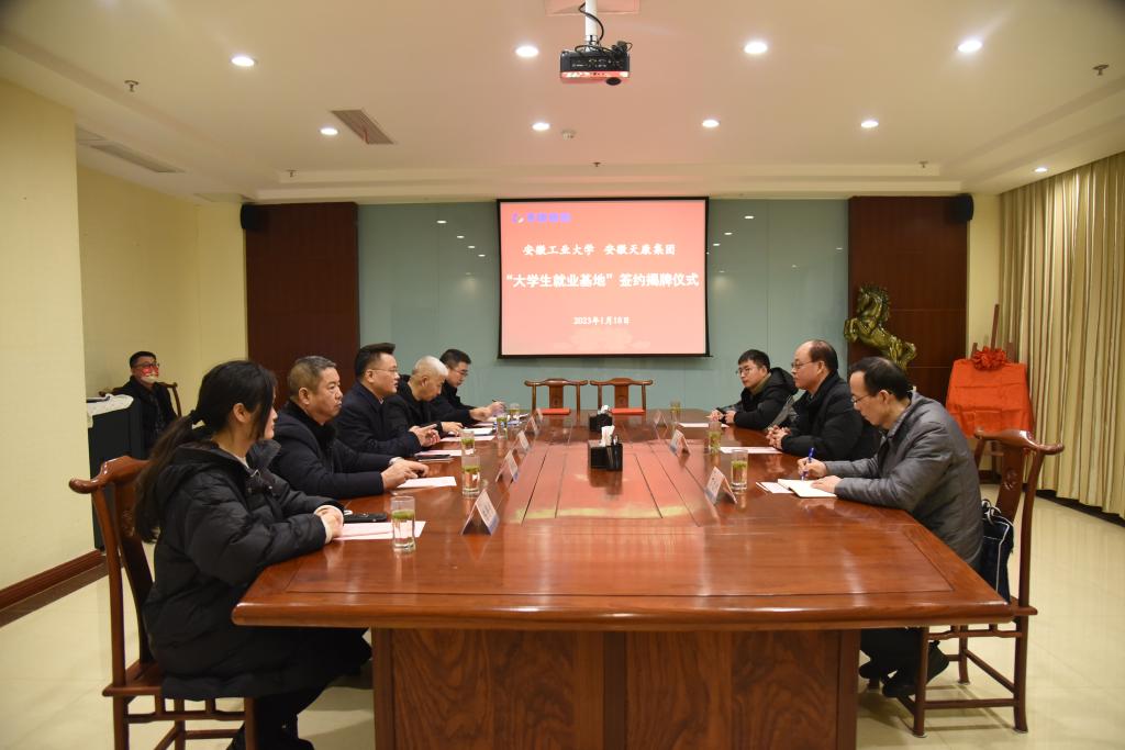 刘明介绍了学校的发展历程以及在人才培养、创新创业、产学研合作、服务社会等方面的成效,重点介绍了学校高度重视校地、校企合作,积极鼓励和引导毕业生扎根安徽、服务地方、实现价值。通过此次就业基地的签约与授牌,进一步加大精准对接力度,持续拓宽合作深度和广度,深化在创新创业、实习就业、产教融合等方面的合作,为公司发展注入新的力量。毛文章介绍了公司的发展历程、规划布局、人才需求、校企合作等情况,希望与学校加强在人才培养、实习就业、成果转化等方面的深度合作,为学生提供更多实践实训平台和工作岗位,拓宽就业渠道,实现学校与企业共赢。座谈会上,丁忠利和徐宏勤共同签署大学生就业基地建设合作协议,刘明和毛文章共同为“大学生就业基地”揭牌。