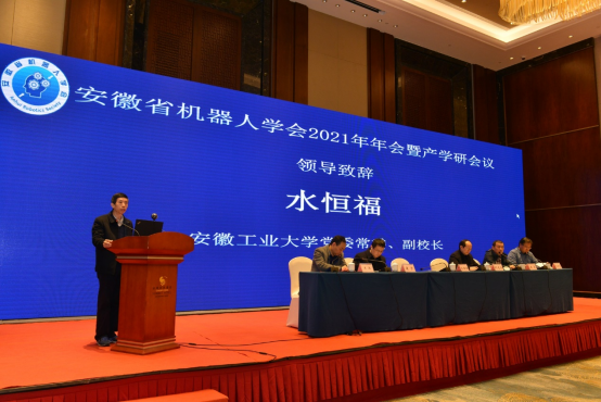 12月17日至18日,安徽省机器人学会2021年年会暨产学研会议在马鞍山召开。本次会议由安徽省机器人学会主办,我校电气与信息工程学院、安徽省电子信息自动化及通信类专业合作委员会承办。副校长水恒福教授出席开幕式并致辞,全省20余所高校的机器人相关院系负责人、教学科研骨干参加会议。