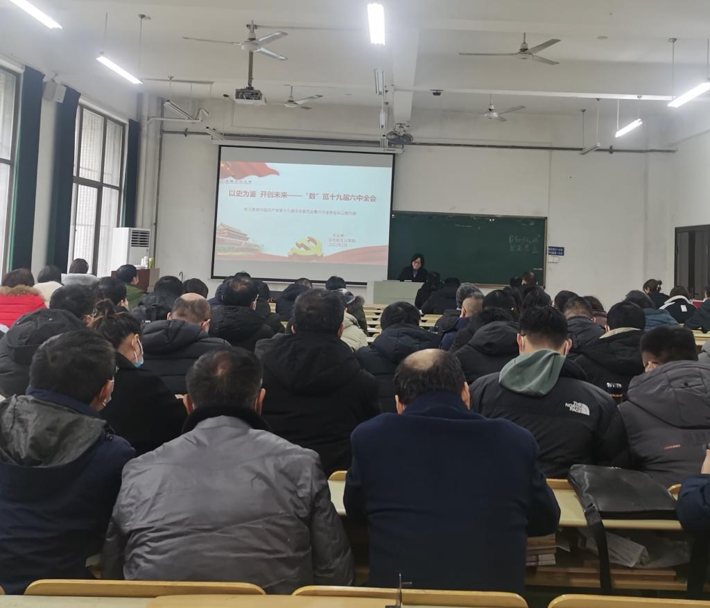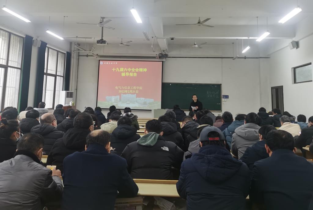新学期伊始,为深入学习贯彻中国共产党第十九届中央委员会第六次全体会议精神。2月21日下午,电气学院邀请校党委讲师团成员、马克思主义学院牛云芳博士来院作党的十九届六中全会精神专题宣讲报告,学院全体教职工、学生代表等参加报告会,学院党委书记丁忠利主持报告会。