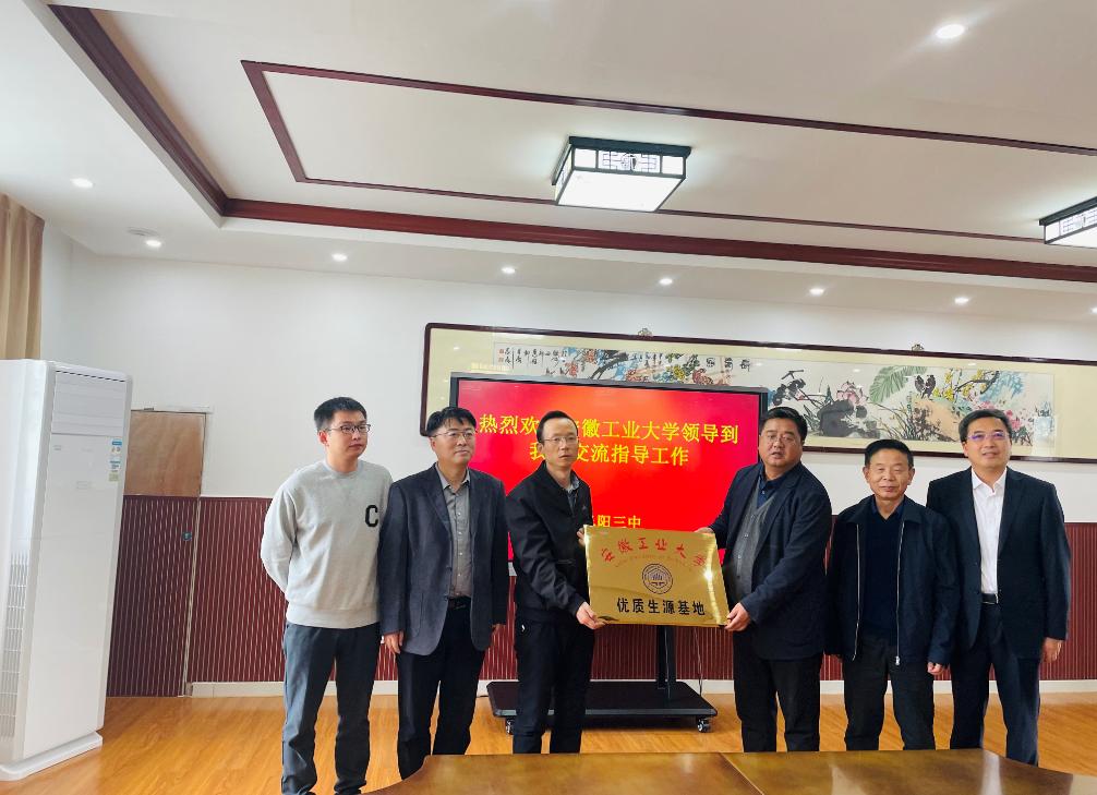 为进一步巩固和加强优质生源基地建设,加强我校与省内重点中学的交流和沟通,提升学校影响力,吸引更多优质生源。11月2日至3日,电气与信息工程学院党委书记丁忠利、校友处处长甘亚等五人,赴阜阳市第一中学、第三中学、阜阳市红旗中学建立优质生源基地,举行优质生源基地授牌仪式。