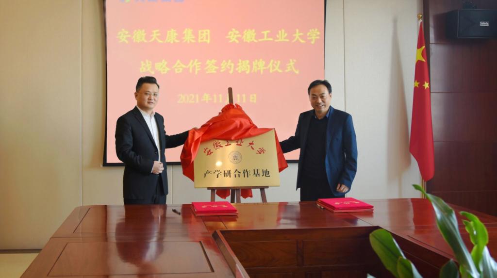 会上,王兵介绍了学校的事业发展和学院的学科建设、专业特色、人才培养以及毕业生就业等情况;毛文章介绍了公司发展历程、产品特色、市场范围和研发需求等情况。双方领导均对院企战略合作前景寄予厚望,通过深入推进校企战略合作,为学生提供更多实习、实训和就业的空间,为专业教师提供产学研平台,共同搭建共谋发展和合作共赢的平台;学院将发挥人才优势和专业特长,在智能化控制系统、传感器技术迭代等方面为安徽天康集团提供持续的技术支撑。随后,王兵与毛文章共同为“产学研合作基地”揭牌,测控系主任李丹与李劲松签订了产学研及实习实训基地协议书。