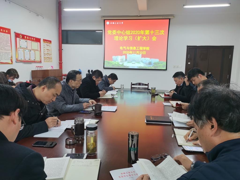 11月23日下午,电气学院党委中心组召开2020年第十三次理论学习(扩大)会,学院党政领导、党委委员、党支部书记、系室中心主任、科级干部和全体辅导员参加会议,学院党委书记丁忠利主持会议。