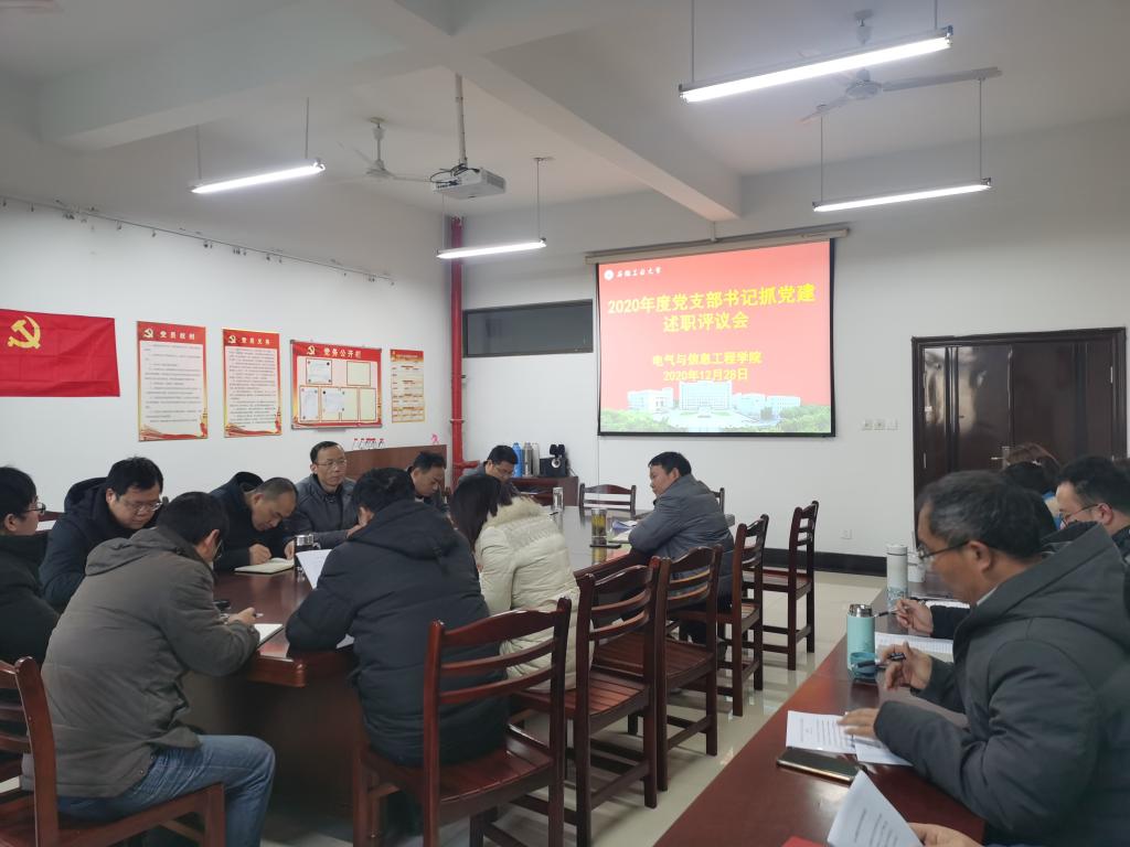 12月28日上午,电气学院党委在电气楼304会议室召开2020年度党支部书记抓党建现场述职评议会,学院党政领导、党委委员、党支部书记、系(室、中心)主任、工会主席、科级干部、师生代表等参加会议。院党委书记丁忠利主持会议。