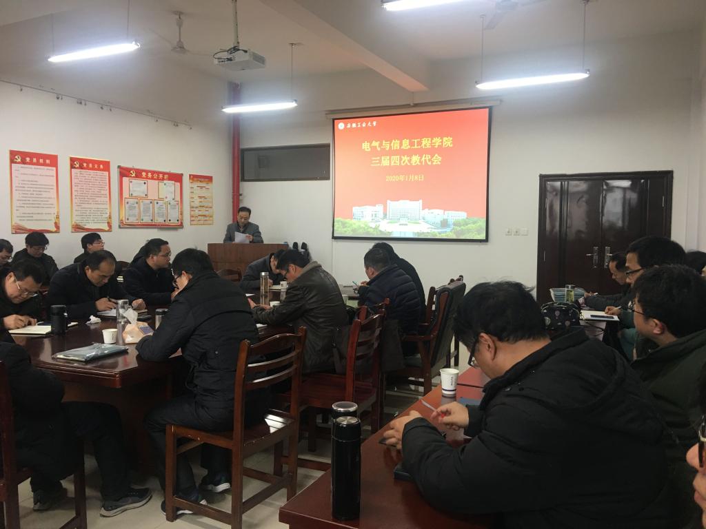 1月8日下午,电气与信息工程学院三届四次教代会在秀山校区电气楼304召开。学院33名正式代表与7名列席代表参加了会议,会议由院党委书记叶凤华主持。