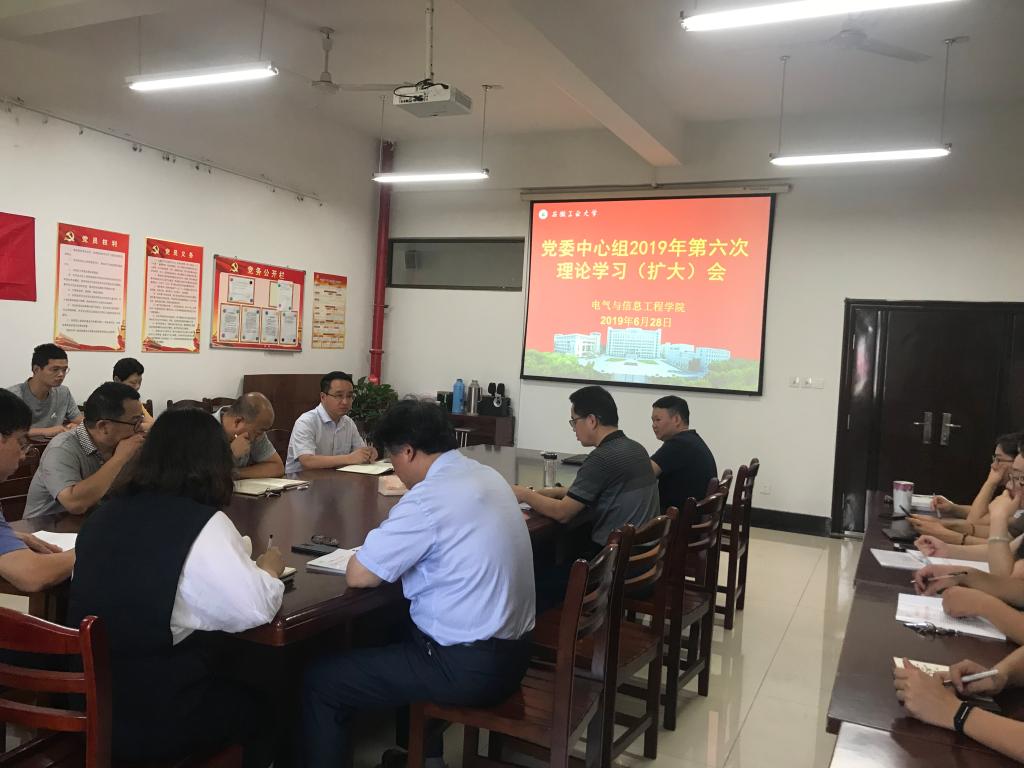 6月28日上午,电气学院党委在电气楼304会议室召开2019年第六次集中学习(扩大)会议。学院党政领导、党委委员、党支部书记、系室中心主任、科级干部、工会主席和全体辅导员参加了会议,会议由院党委书记叶凤华主持。
