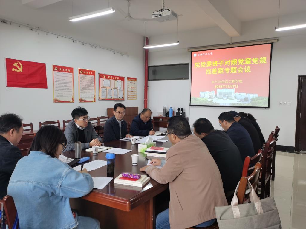 按照学校党委“不忘初心、牢记使命”主题教育工作部署,11月7日上午,电气学院党委召开对照党章党规找差距专题会议。省委第十五巡回指导组,校第四督导工作组到会指导,学院领导班子成员、党委委员,部分党支部书记、团委书记参加会议,会议由院党委书记叶凤华主持。