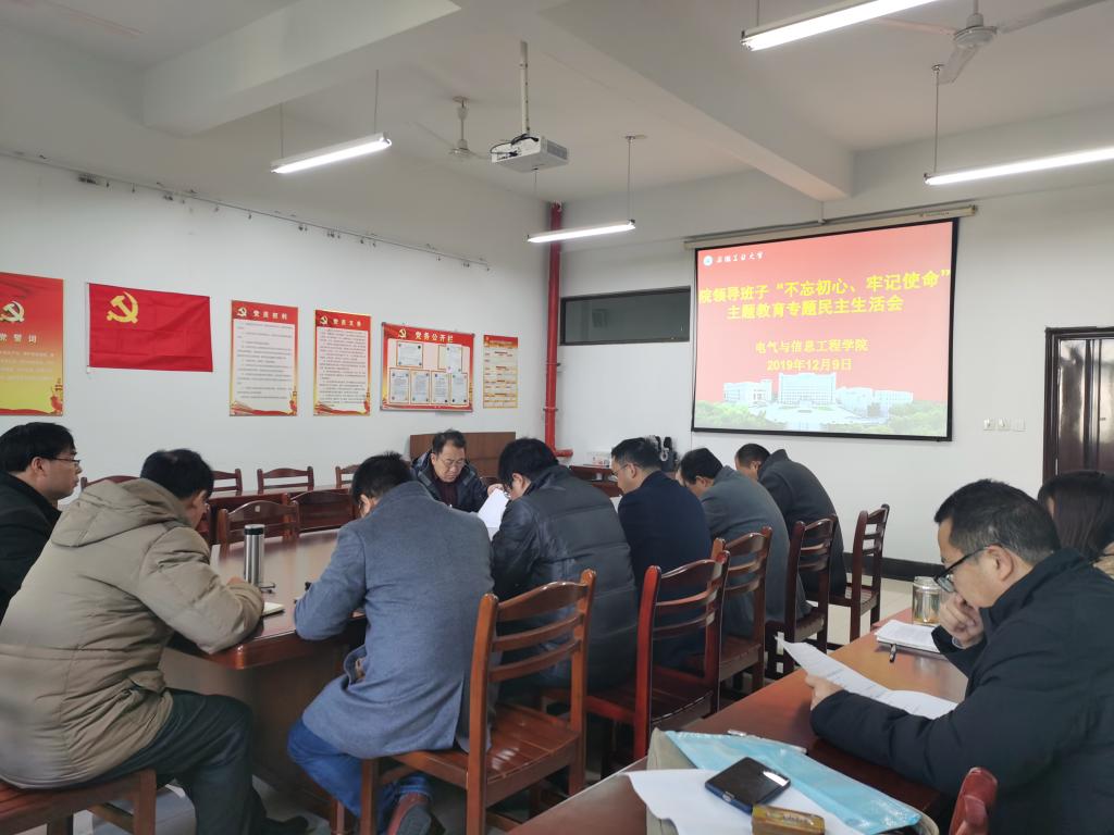 12月9日上午,电气学院党委召开“不忘初心、牢记使命”主题教育专题民主生活会,学院领导班子成员参加,学院党委委员、部分党支部书记和党代表列席会议,会议由院党委书记叶凤华主持。校主题教育第四督导组到会指导。