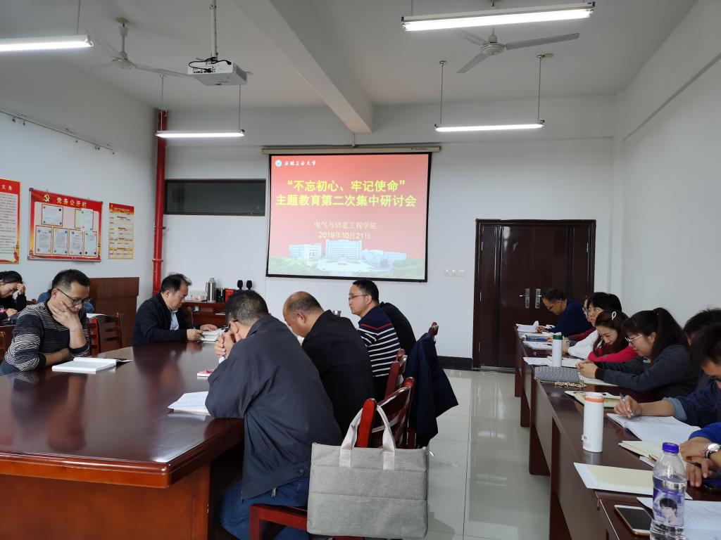 10月21日下午,电气学院领导班子成员围绕“坚定理想信念,深入体会党的宗旨性质”主题召开了“不忘初心、牢记使命”主题教育第二次集中学习研讨会。校党委“不忘初心、牢记使命”主题教育第四督导组,学院领导班子成员、党委委员、党支部书记、系室中心主任、科级干部、工会主席、全体辅导员和教工党支部支委等参加会议。会议由院党委书记叶凤华主持。