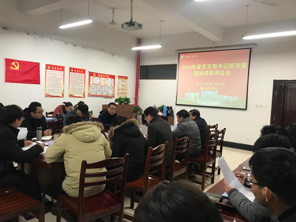 为深入学习贯彻习近平新时代中国特色社会主义思想和党的十九大精神,牢固树立党的一切工作到支部的鲜明导向,进一步增强学院党支部书记抓党建的责任意识,根据《安徽工业大学2018年度基层党组织书记抓党建述职评议考核工作实施方案》(安工大党〔2018〕120号)和《电气学院党委关于做好2018年度党支部书记抓党建述职评议考核的工作通知》文件精神,1月4日上午,电气学院党委在电气楼304会议室召开2018年度党支部书记抓党建现场述职评议会,学院党政领导、党委委员、系室(中心)主任、工会主席、科级干部、师生代表等参加会议。会议由院党委书记叶凤华主持。