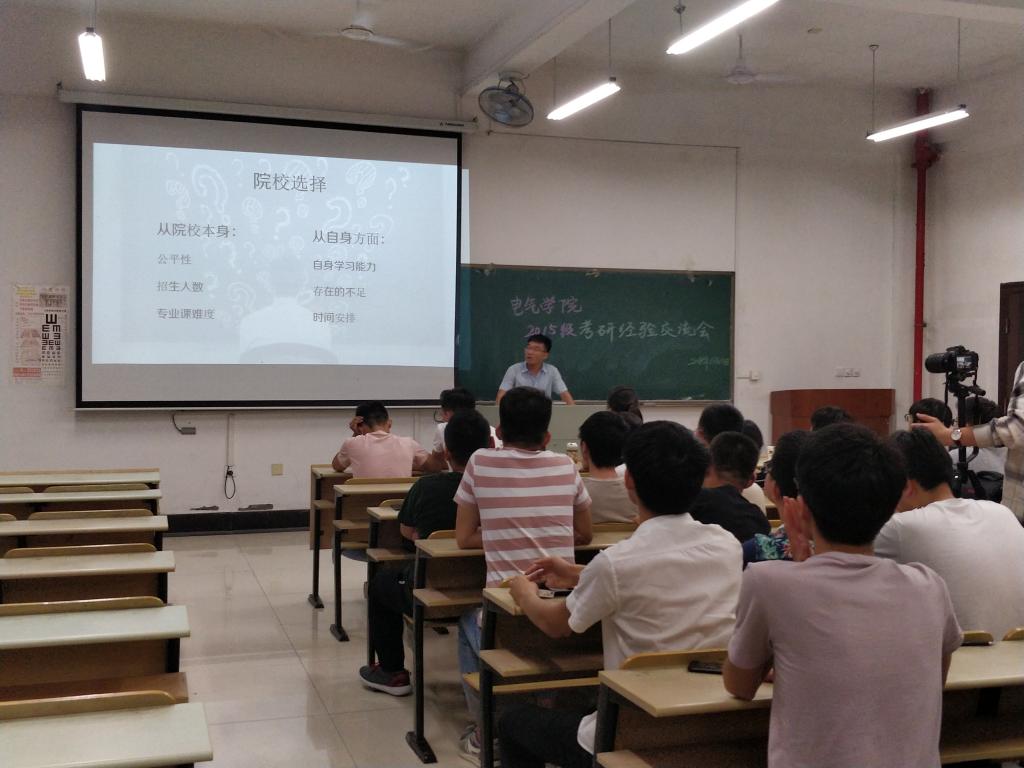 时间滴答滴答地走过,转眼2019届考研之旅已经过半。为了提升新一届考研学生的备考信心、加强考研技巧的掌握、全面了解考研形势,6月14日晚7点,电气学院“传经送宝”各专业考研经验分享会在电气楼112、113、114、115教室同步进行,学院2015级有考研诉求的同学聆听了高年级优秀学长的经验分享。
