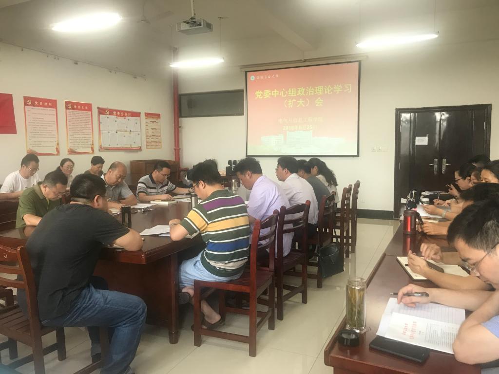 6月25日下午,电气学院召开2018年第五次党委中心组理论学习(扩大)会议,学院党政领导、党委委员、党支部书记、各系室中心主任、科级干部、工会主席和全体辅导员参加会议,会议由院党委书记叶凤华主持。