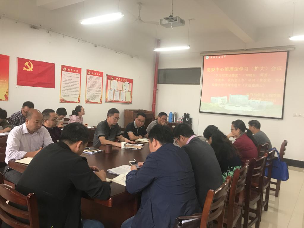 9月28日上午,电气与信息工程学院在电气楼304会议室召开党委中心组理论学习(扩大)会议,围绕“讲政治、重规矩、作表率”第三专题“作表率,我们怎么办”开展集中学习研讨。学院党委中心组成员、各系室中心主任参加会议。会议由院党委书记叶凤华主持。