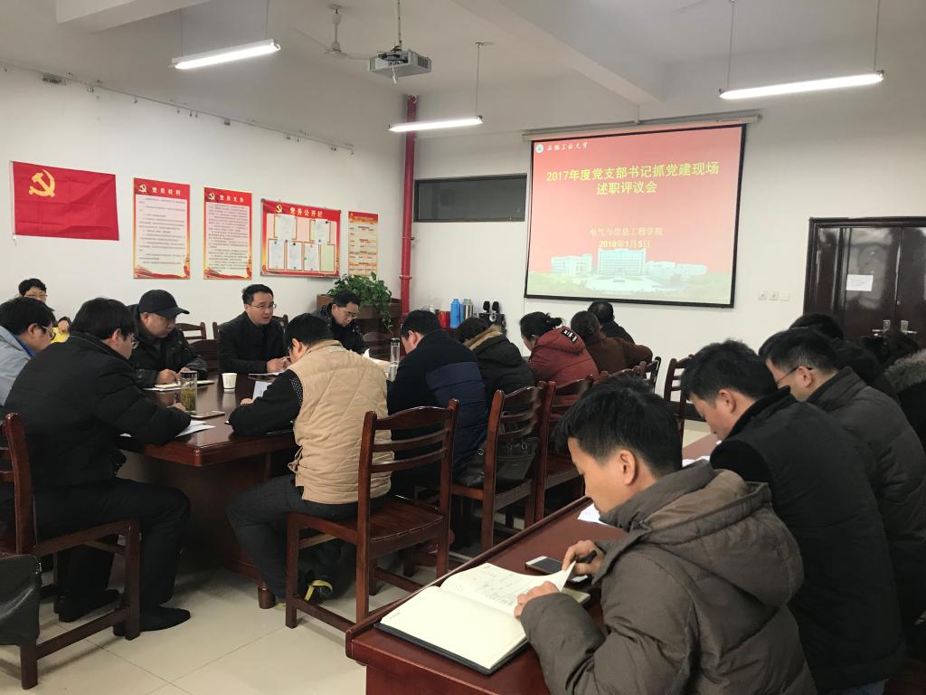 为深入学习贯彻党的十九大精神,落实全面从严治党要求,进一步增强学院党支部书记抓党建的责任意识,提升支部党建工作水平,根据《安徽工业大学2017年度基层党组织书记抓党建述职评议考核工作实施方案》和《电气与信息工程学院2017年度党支部书记抓党建述职评议考核及党支部考核工作实施方案》等文件精神,2018年1月5日下午,电气学院党委在电气楼304会议室召开2017年度党支部书记抓党建现场述职评议会。学院党政领导、党委委员、党支部书记、系室中心主任、科级干部、分工会主席、师生代表等参加会议。会议由院党委书记叶凤华主持。
