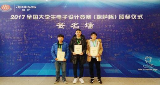12月2日,2017瑞萨杯全国大学生电子设计竞赛颁奖典礼在北京航天航空大学举行。教育部、工信部相关领导,中国科学院、中国工程院院士代表,竞赛组委会相关领导,瑞萨电子、媒体代表,以及来自全国151所大学的268支一等奖获奖队伍和部分二等奖获奖队伍代表出席了颁奖仪式。我校电气与信息工程学院的王帅、王子明和陈向阳3名学生作为全国一等奖获奖队伍代表应邀参加颁奖典礼,并提交了优秀论文。