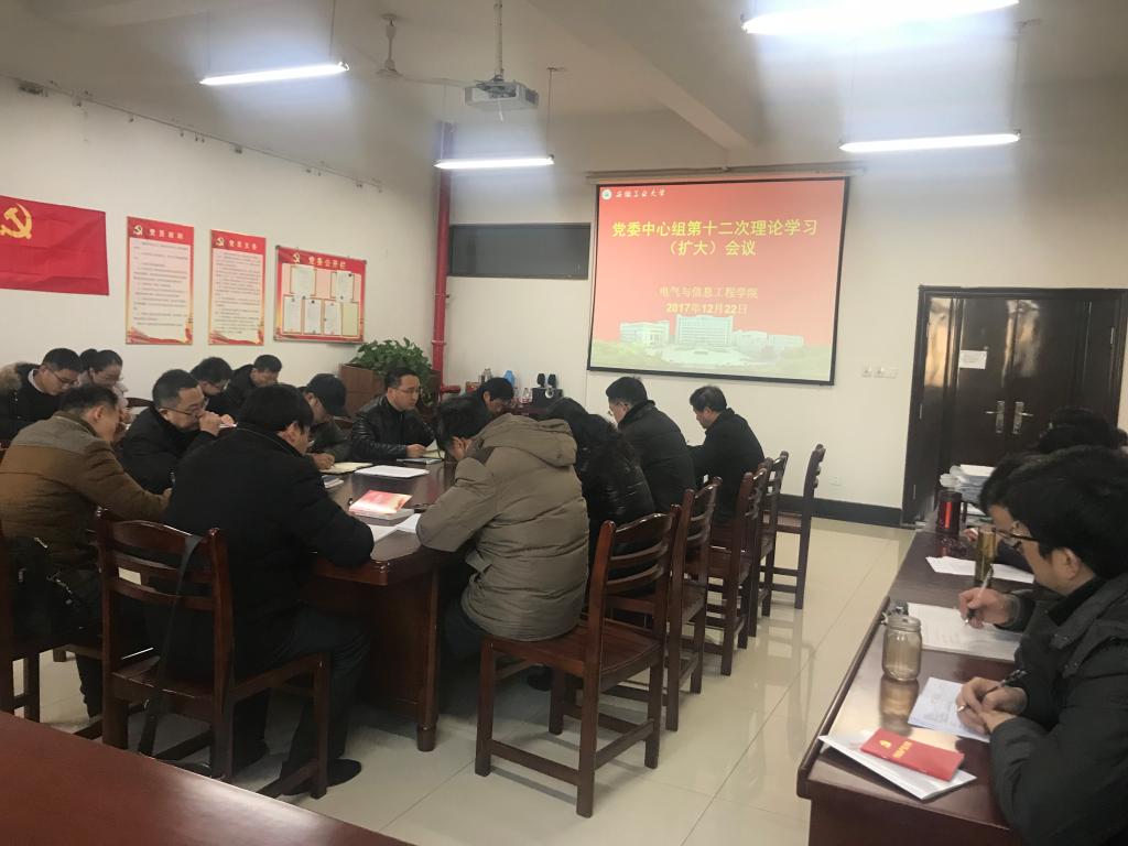 12月22日上午,学院党委在电气楼304会议室召开2017年中心组理论学习第十二次(扩大)会。学院党政领导、党委委员、党支部书记、各系室中心主任、科级干部、工会主席、团委书记和全体辅导员参加会议,会议由院党委书记叶凤华主持。