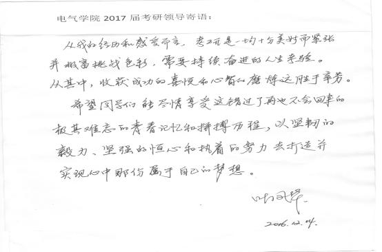 电气与信息工程学院始终重视用考研引领学风建设工作,2017届考研学生达293人,占年级总人数的55.08%,通过行之有效的举措,营造了浓厚的考研氛围,充满了暖暖的人文关怀。