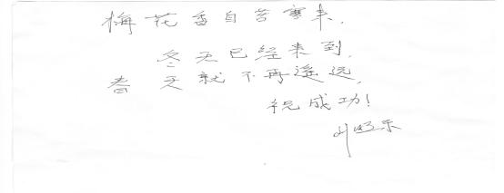 学院领导专题会议研究考研教室提供、考研心理辅导、考研学生课程设计及考试安排,为考研学生冲刺复习提供了政策支持。12月23日,学院为参加考研的同学准备了考试专用文具用品,学院领导精心题写了考研寄语:“考研是一场十分美妙而紧张并极富挑战色彩,需要持续奋进的人生考验”、“梅花香自苦寒来”激励考生坚持到底,实现梦想。临考前,年级辅导员通过QQ、微信等网络平台为同学悉心提醒。考试当天辅导员在考场门口为考研学子鼓劲加油。
