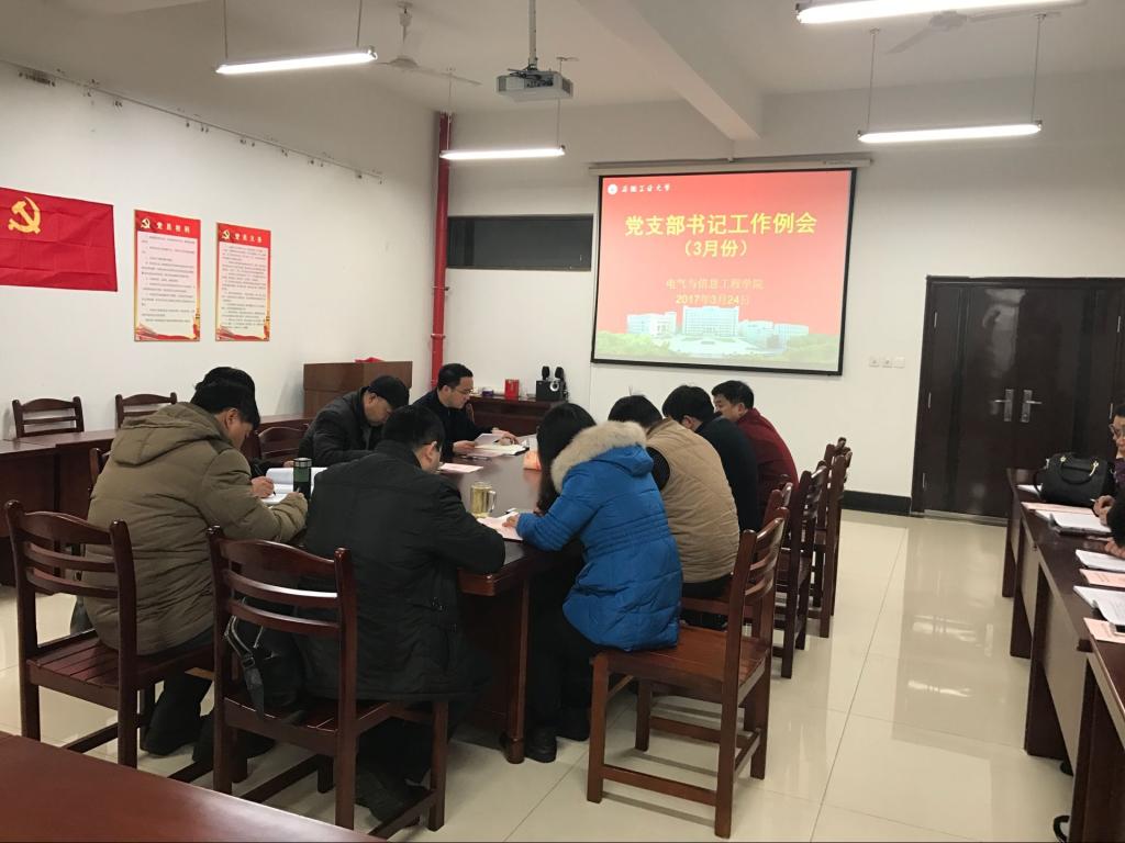 3月24日上午,电气与信息工程学院党支部书记工作例会在电气楼304会议室召开。院党委书记、党委副书记、全体党支部书记、党务秘书参加会议。会议由院党委书记叶凤华主持。
