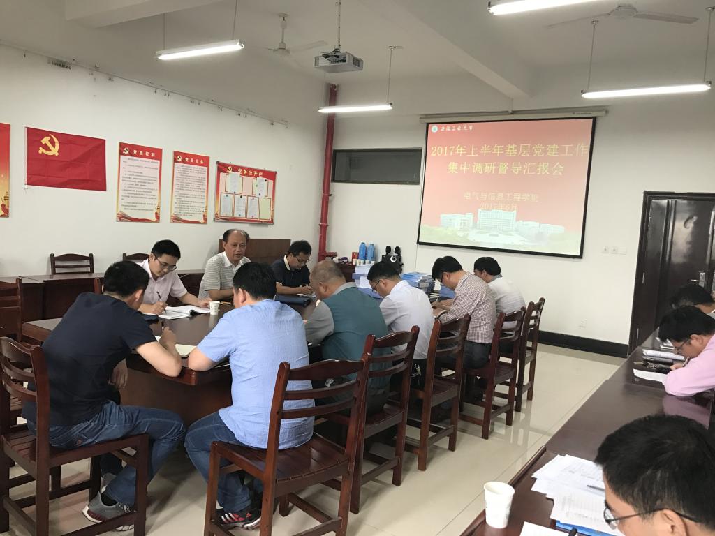 6月14日上午,校党委基层党建工作第四督导组组长、校党委常委、组织部部长、机关党委书记刘明,校副处级纪检员杨卫兵,校党委组织部干部科科长余海龙一行,到电气学院党委调研督导2017年上半年基层党建工作开展情况。电气学院党委书记叶凤华、副书记郭宏、各党支部书记、党务秘书参加了调研督导汇报会。