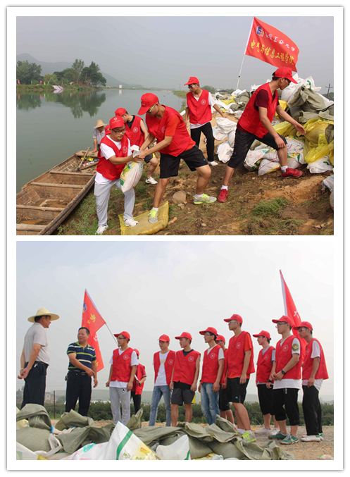 7月12日上午,电气学院正在马鞍山市佳山乡学苑社区参加暑期社会实践的11名党员、入党积极分子志愿者在社区党支部的组织下,深入雨山区采石河超陂圩抗灾第一线,参与河堤防汛救灾。