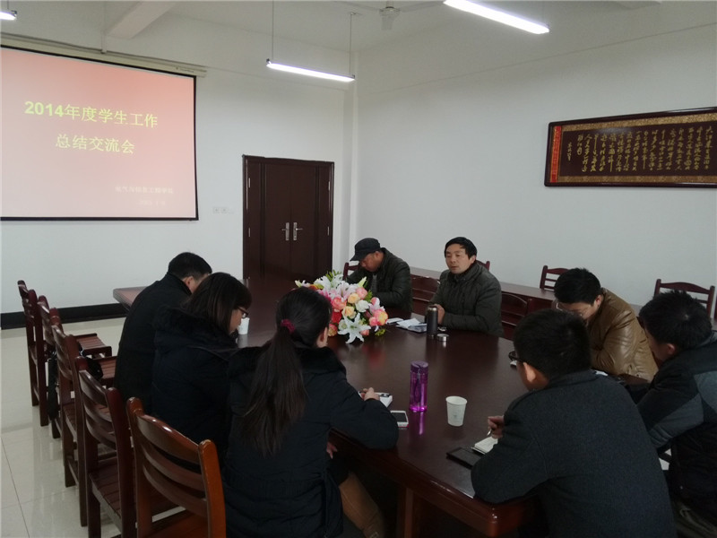 为了总结2014年学生工作,推动学院学生工作不断上台阶上水平,1月9日上午,电气与信息工程学院在电气楼304会议室召开了2014年度学生工作总结交流会。学院党委书记黄国才、副院长郭宏,全体辅导员参加了会议,会议由郭宏主持。