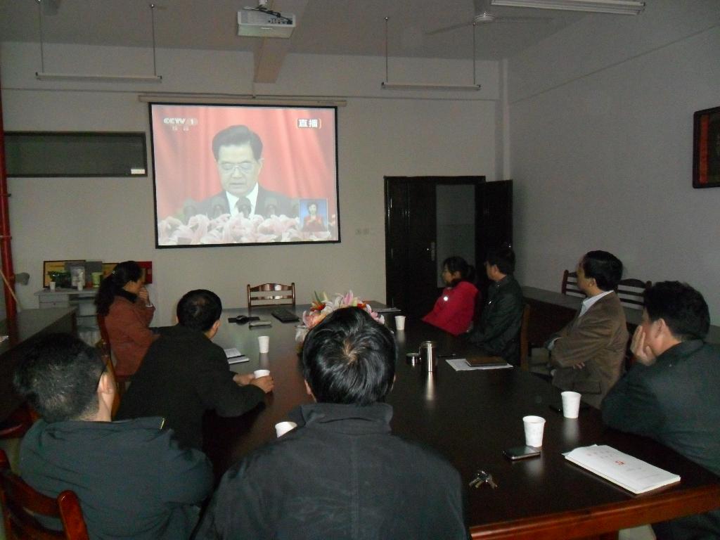 学院党委中心组在电气楼304会议室通过网络收看了开幕式的盛况和胡锦涛总书记所作的报告。学院党政领导、各系室主任、支部书记、学生辅导员、学院办公室人员参加了收看。学院学生安排在大学生活动中心集中收看。