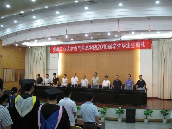 2010年6月29日上午,电气信息学院2010届学生毕业典礼在本部学术会议中心隆重举行。葛芦生副校长、孙世民书记、赵光兴院长、张捍东副院长、刘晓东副院长和各系主任出席,2010届各班班主任以及全体毕业生参加了典礼,典礼由院党委副书记姚敏副院长主持。