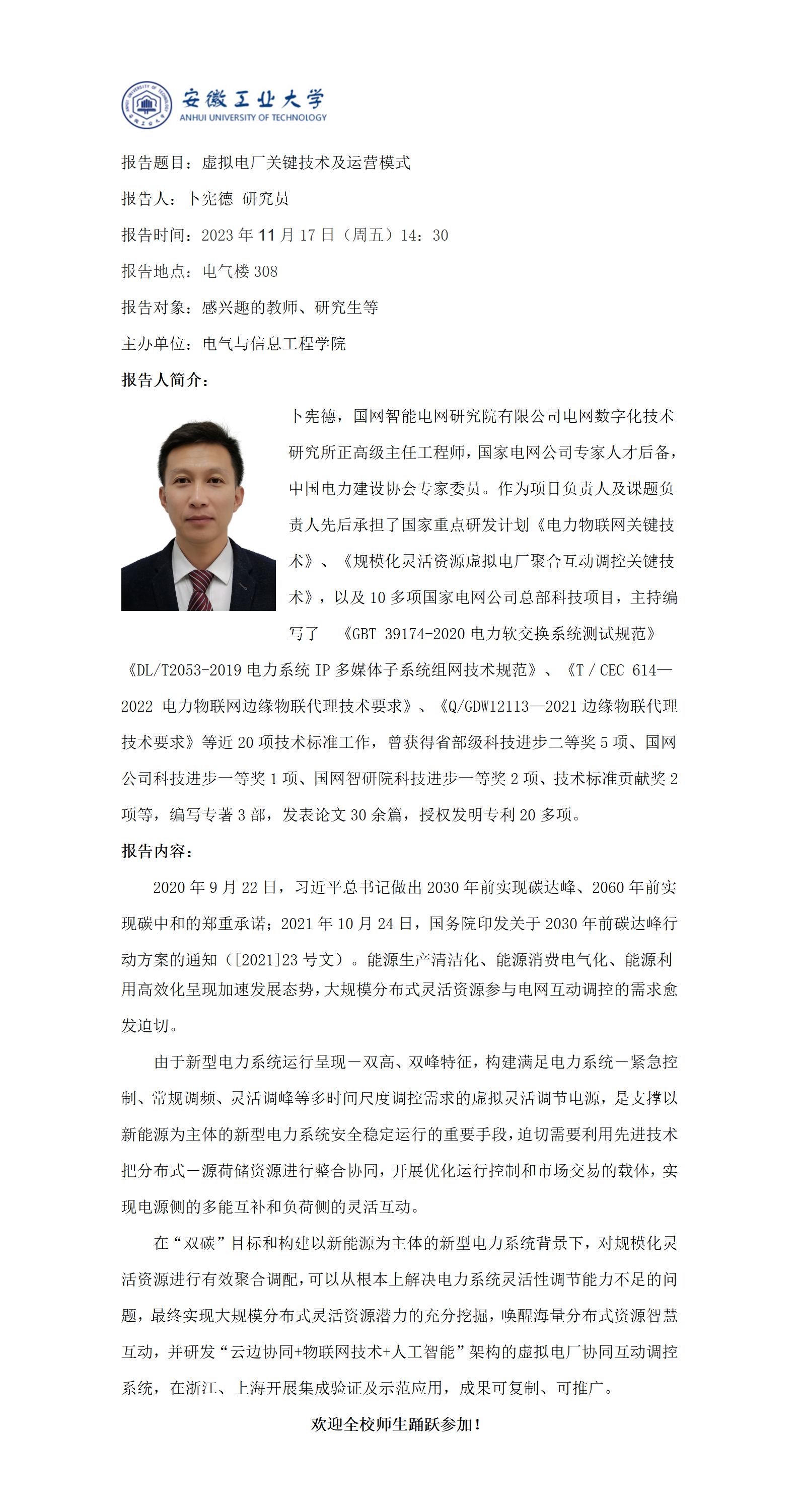 电气与信息工程学院”谦之“学术讲坛之五十一
