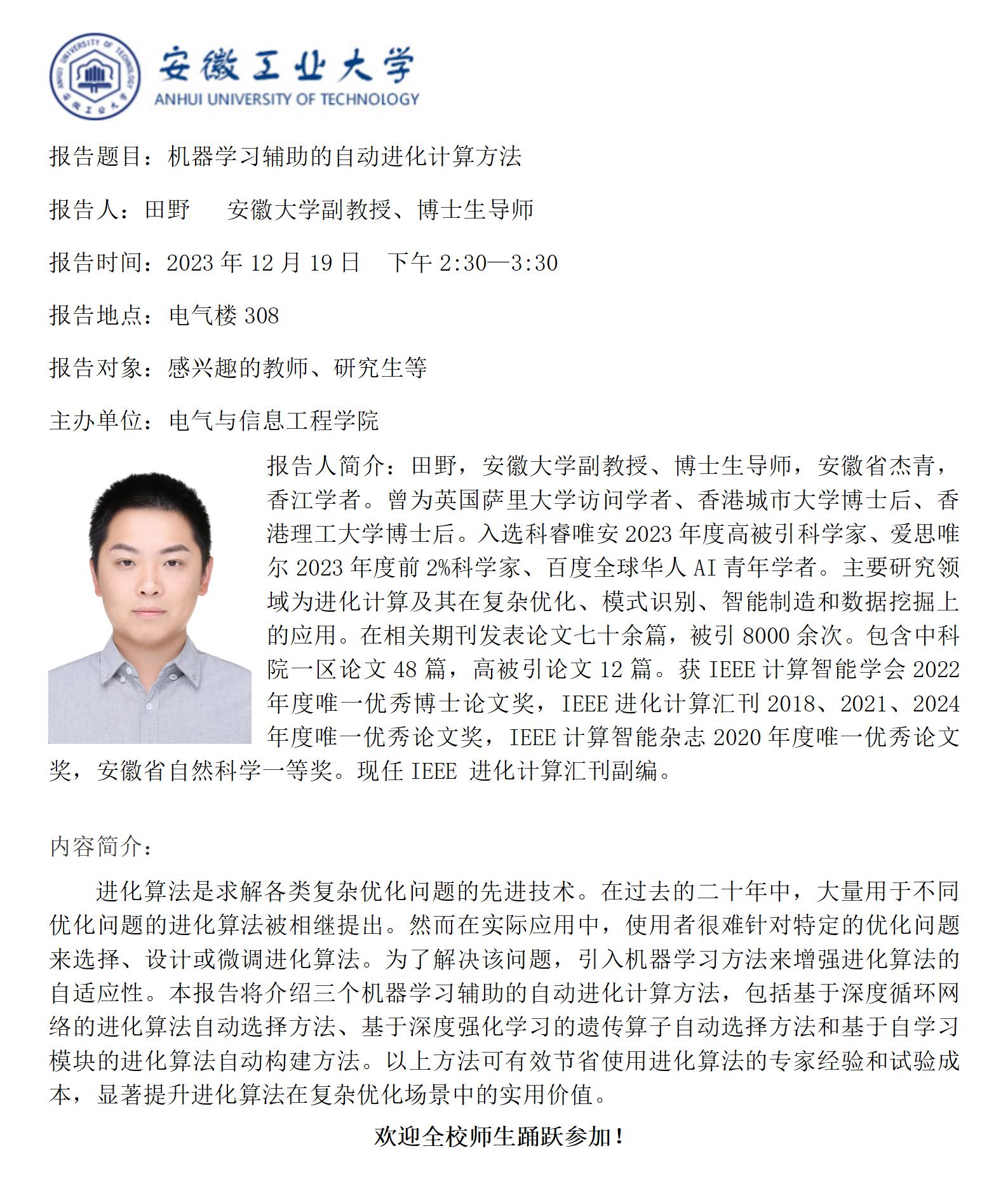 “谦之”学术讲坛之六十二-机器学习辅助的自动进化计算方法