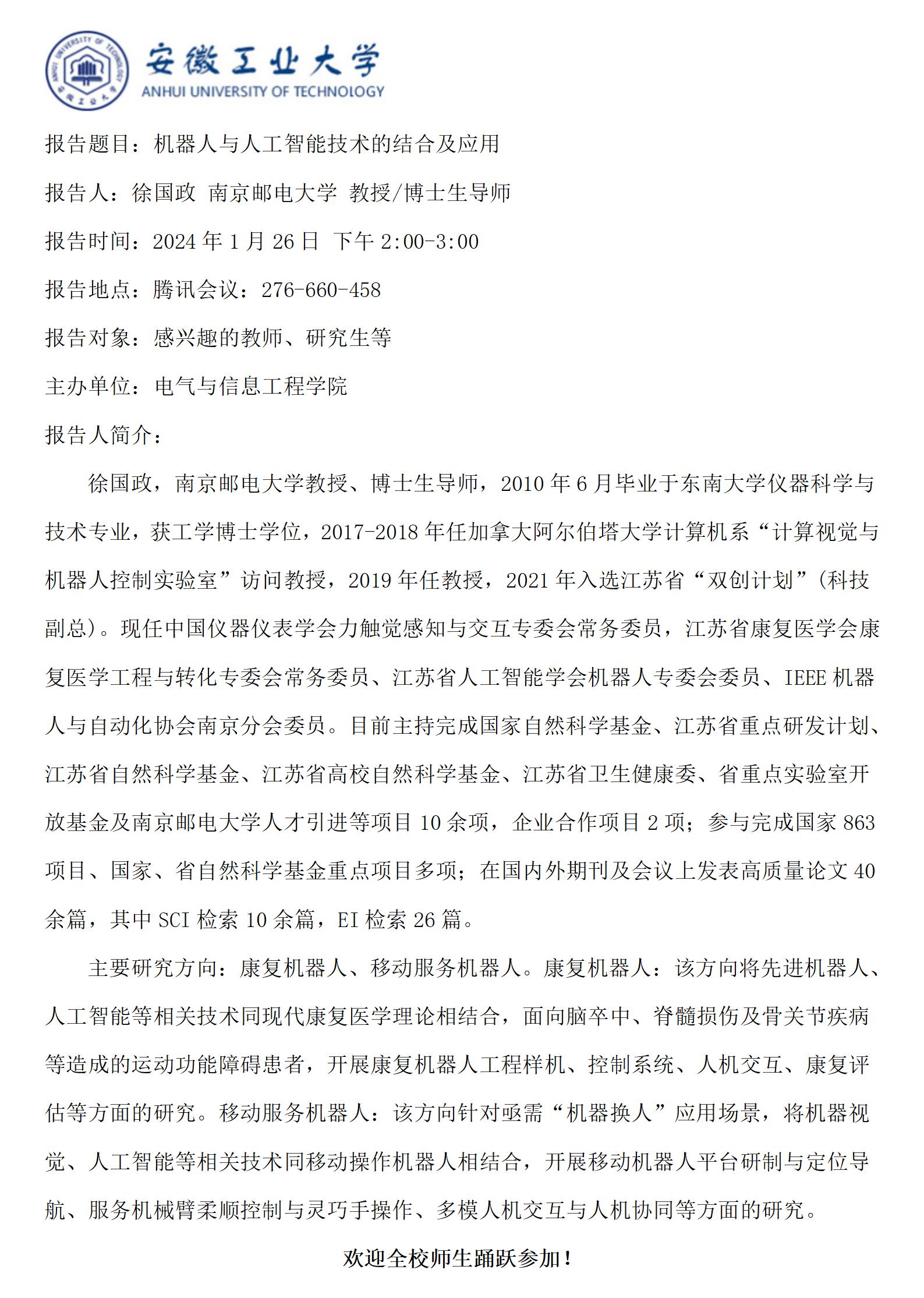 “谦之”学术讲坛之七十四-机器人与人工智能技术的结合及应用