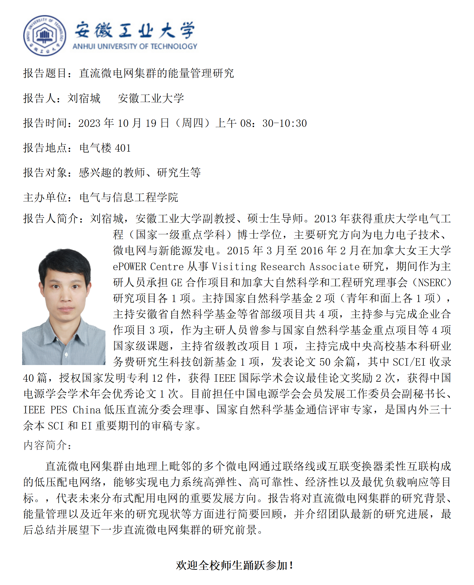 电气与信息工程学院”谦之“学术讲坛之四十六