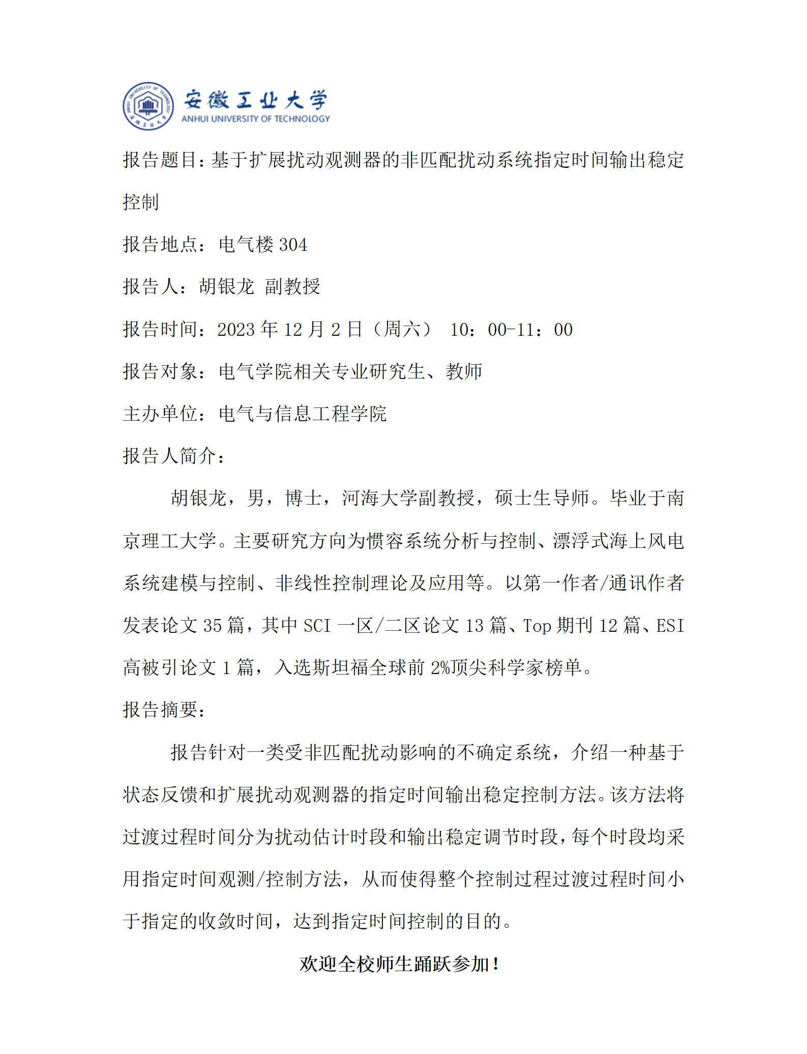 电气与信息工程学院”谦之“学术讲坛之五十六
