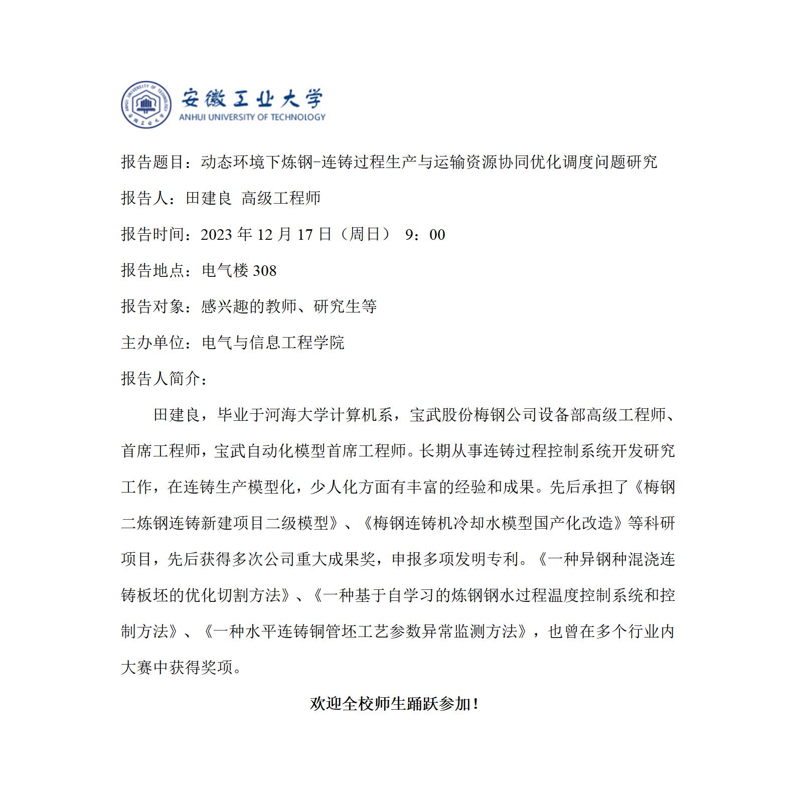 上一条:砺山学术报告之二十五-炼钢厂生产实时调度的动态网络建模及调度策略优化方法