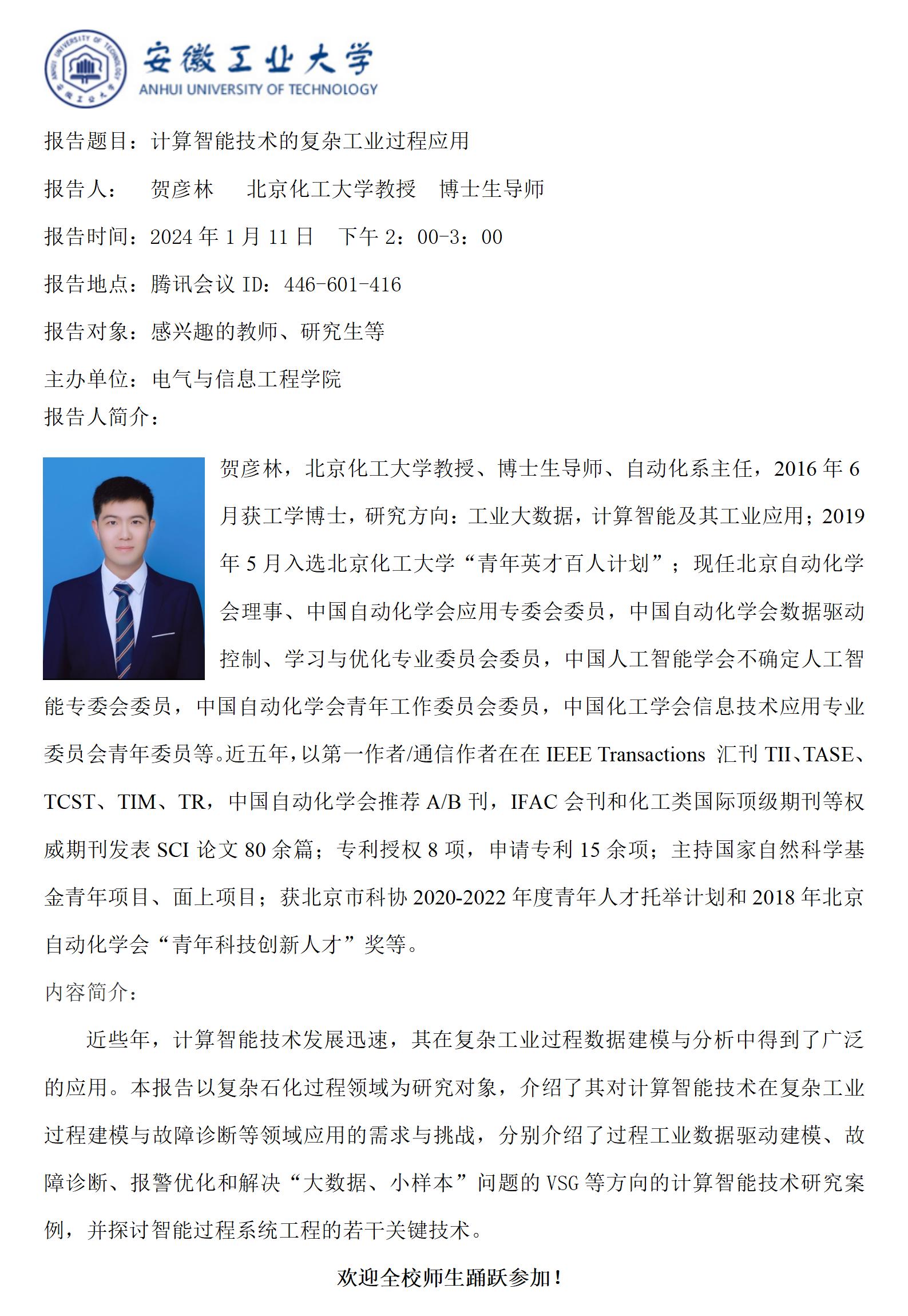 “谦之”学术讲坛之六十八-计算智能技术的复杂工业过程应用