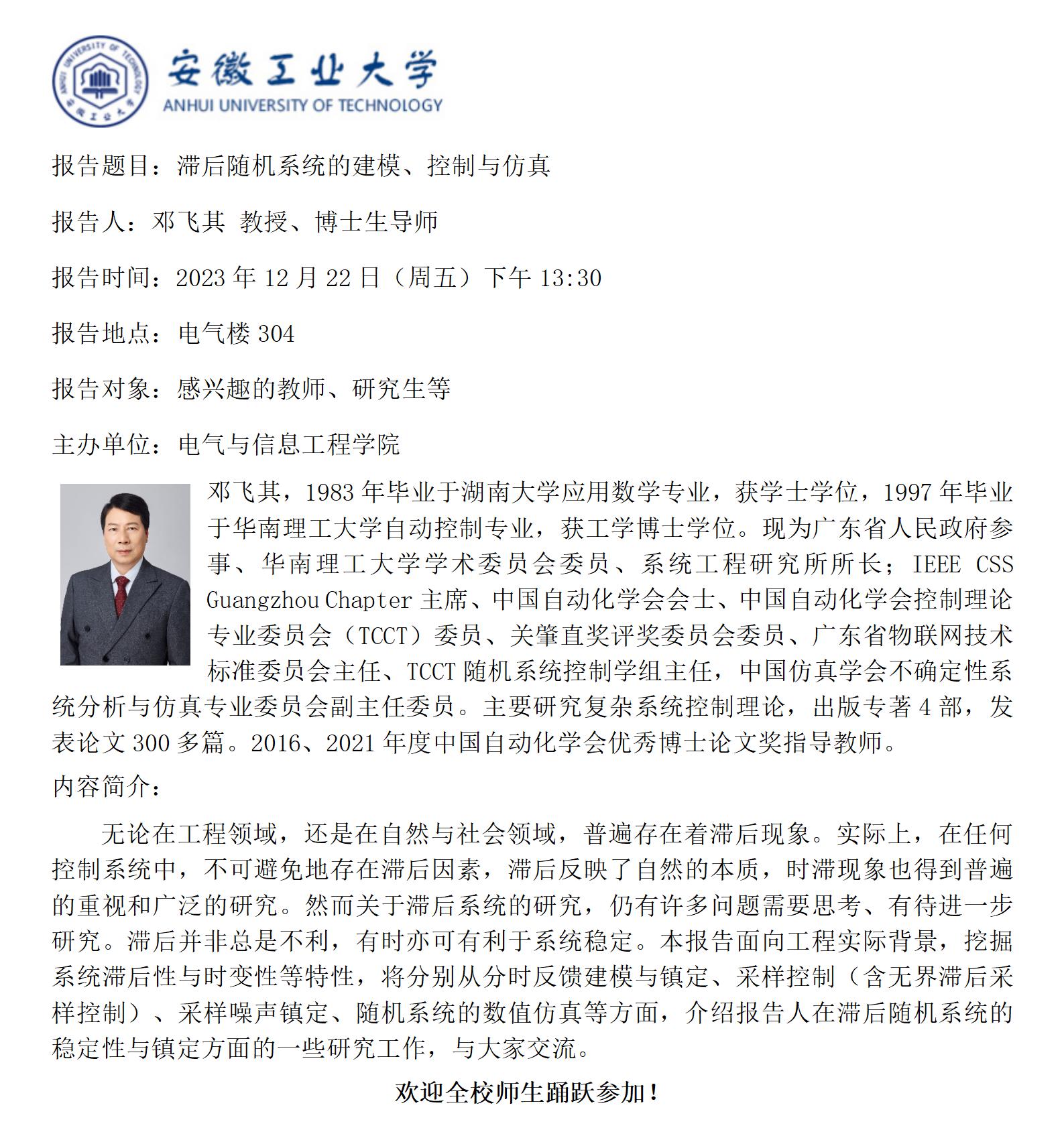 “谦之”学术讲坛之六十三-滞后随机系统的建模、控制与仿真