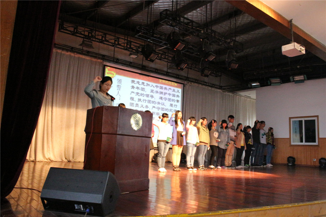 一段精彩的开场短片映入眼帘,轻快的音乐和唯美的画面使得同学们深深体会到这场仪式就像是属于青春的成长礼。在主持人的带领下,全体师生进行了升国旗、奏唱国歌、迎团旗、合唱团歌等多项活动,通过视频深入了解了共青团的发展历史。诗朗诵《放飞青春》声情并茂,歌曲《精忠报国》慷慨激昂,展现出青少年的蓬勃生机,老生代表包军宇作了以《青春榜样》为主题的发言,向新生们阐释了人生目标的重要性。紧接下来颁发“三证”,各班团支书有序走向舞台,活动嘉宾为各团支部颁发三证,团委副书记武梦娇带领大家激情宣誓。最后,郭宏副院长致词,对本次活动进行总结,希望同学们要正确认知大学生活,努力学习,不断奋斗,做一名合格的共青团员。