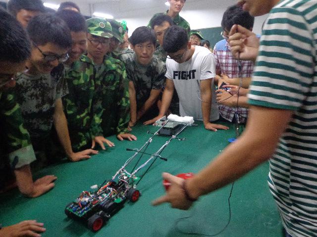 展览现场展出了智能车、轮廓检测仪、双足机器人、仿人机器人、电磁炮、四旋翼直升机等众多高科技作品。创作者为大家做了详细、生动的解说,并进行现场模拟,演示作品功用。很多大一新生都由衷地发出感慨,觉得“牛人”就在身边,并纷纷表示一定要做一件属于自己的科技作品。本次展出的科技创新作品,都是学院大学生科技创新团队中精挑细选出来的,每件作品都凝结了创作者的聪明才智和辛勤汗水,也展现了电气学院大学生紧扣时代脉搏的创新精神和创新能力。