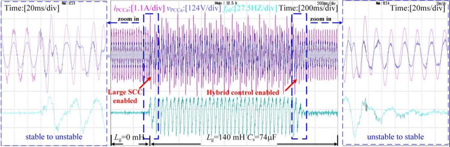 此外,针对大串联补偿背景下导致的暂态同步失稳问题,团队提出了一种混合模糊优化控制器来提高串联补偿系统的暂态同步稳定性。通过传统PI与模糊控制的有效结合,该混合模糊控制器可以实现对系统频率扰动的快速抑制,降低串联补偿引发的系统频率偏移问题,从而使系统运行于暂态稳定域内部。所提出混合模糊优化控制不依赖系统特定参数,具有良好的鲁棒性和自适应性,可以有效解决串联补偿导致的并网变流器暂态同步失稳问题,对提高大规模新能源并网系统的功率传输能力,保障系统的稳定运行具有重要意义。