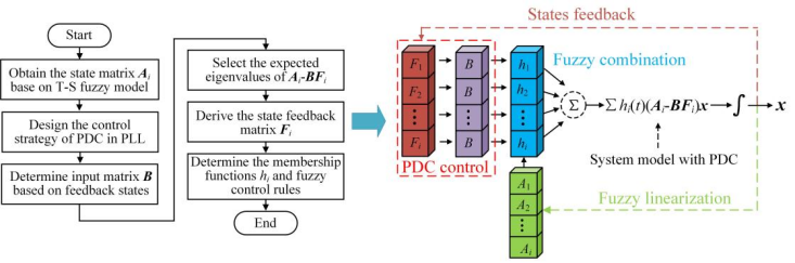 针对上述问题,本研究以三相LCL型并网逆变系统为研究对象,提出基于T-S模糊建模的暂态同步稳定性分析与控制策略。通过建立系统的T-S模糊等效模型,将非线性矛盾等效转移到隶属度函数中,从而利用线性系统理论求取李雅普诺夫函数和系统的吸引域;并通过线性子系统状态反馈设计实现系统的并行分布式补偿控制,从而有效扩大了系统的吸引域,显著提高了新能源并网变流器的暂态同步稳定性。