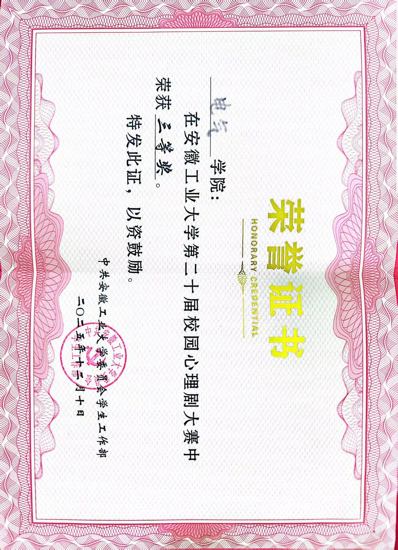 我院在校第十一届学院心理健康教育工作评比中荣获佳绩