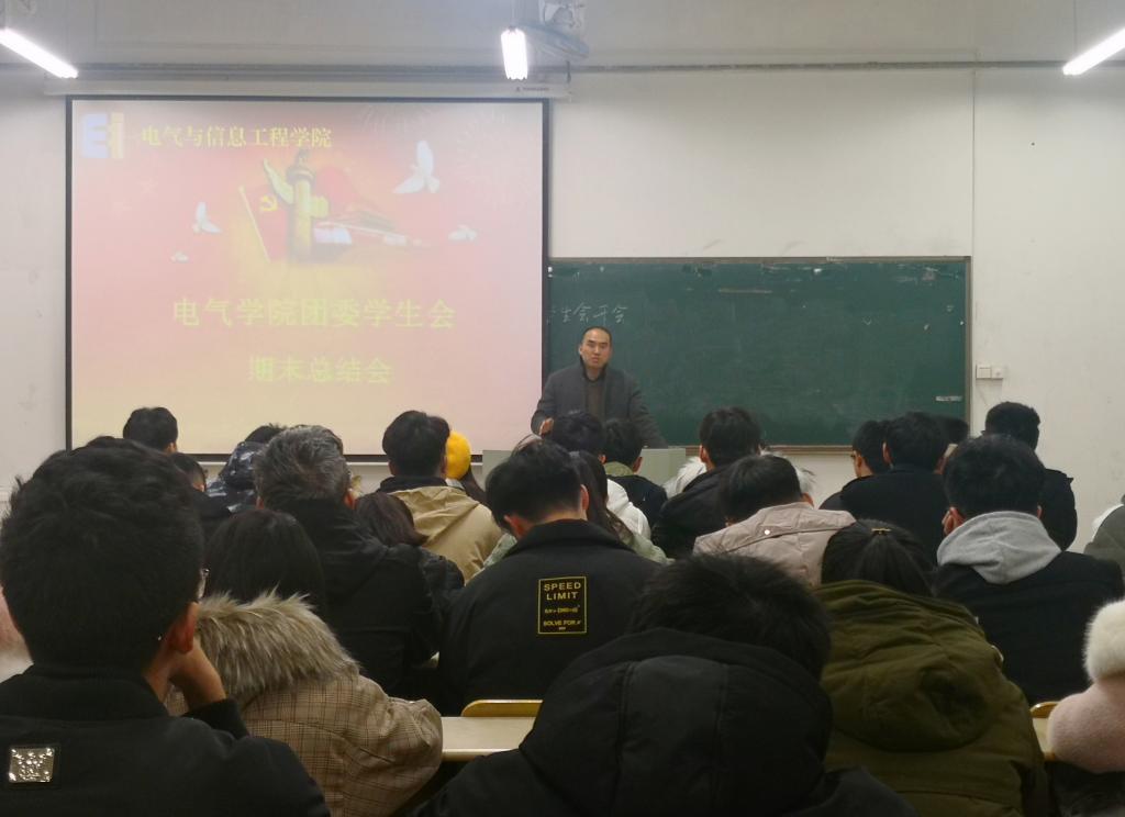 12月18日中午,电气学院于电气楼112教室召开团委学生会期末总结会。学院党委副书记、副院长夏玉钦,2018级辅导员李修正及全体团委学生会成员参加本次会议。