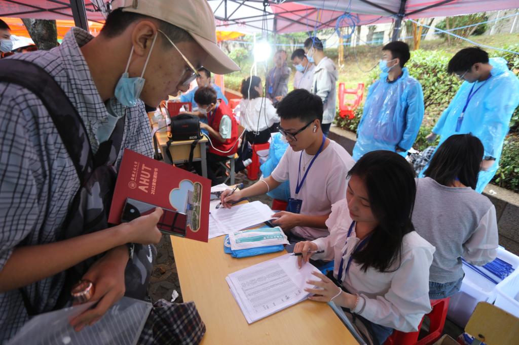 虽然雨淅淅沥沥下个不停,但我们的红马甲志愿者们却依然穿梭在校园里,帮助新生运送行李,贴心的一对一引领,从校门口的笑脸相迎,到迎新展台的井然有序,再到大包小包搬运行李,红马甲的热情温暖了新同学的心,2022级新生都对志愿者们赞不绝口、表示感谢。学院团委书记李修正表示:“我们设置了党员示范岗,号召全院学生党员与学生会干部共同参与迎新工作,这不仅是把迎新志愿服务做细做实,更用实际行动让学生党员诠释和践行了先锋模范作用。”谈及成为志愿者的初衷,院学生会主席孙嘉睿笑着说到:“前年开学我们受到了学长学姐的帮助,感到十分温暖。今年我们自己也站到了这个位置,更应该回馈这份友善,全力配合学院做好迎新工作。”